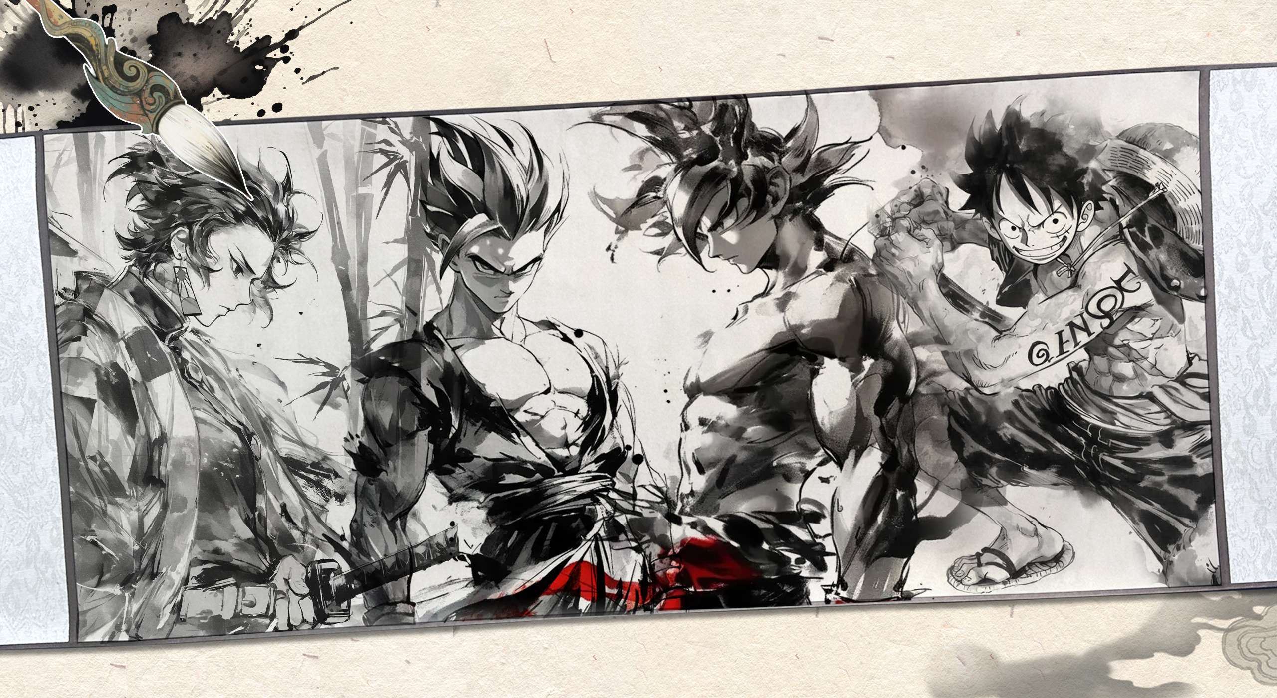 Hand-Drawn Original Painting Anime Scroll 13X38 In